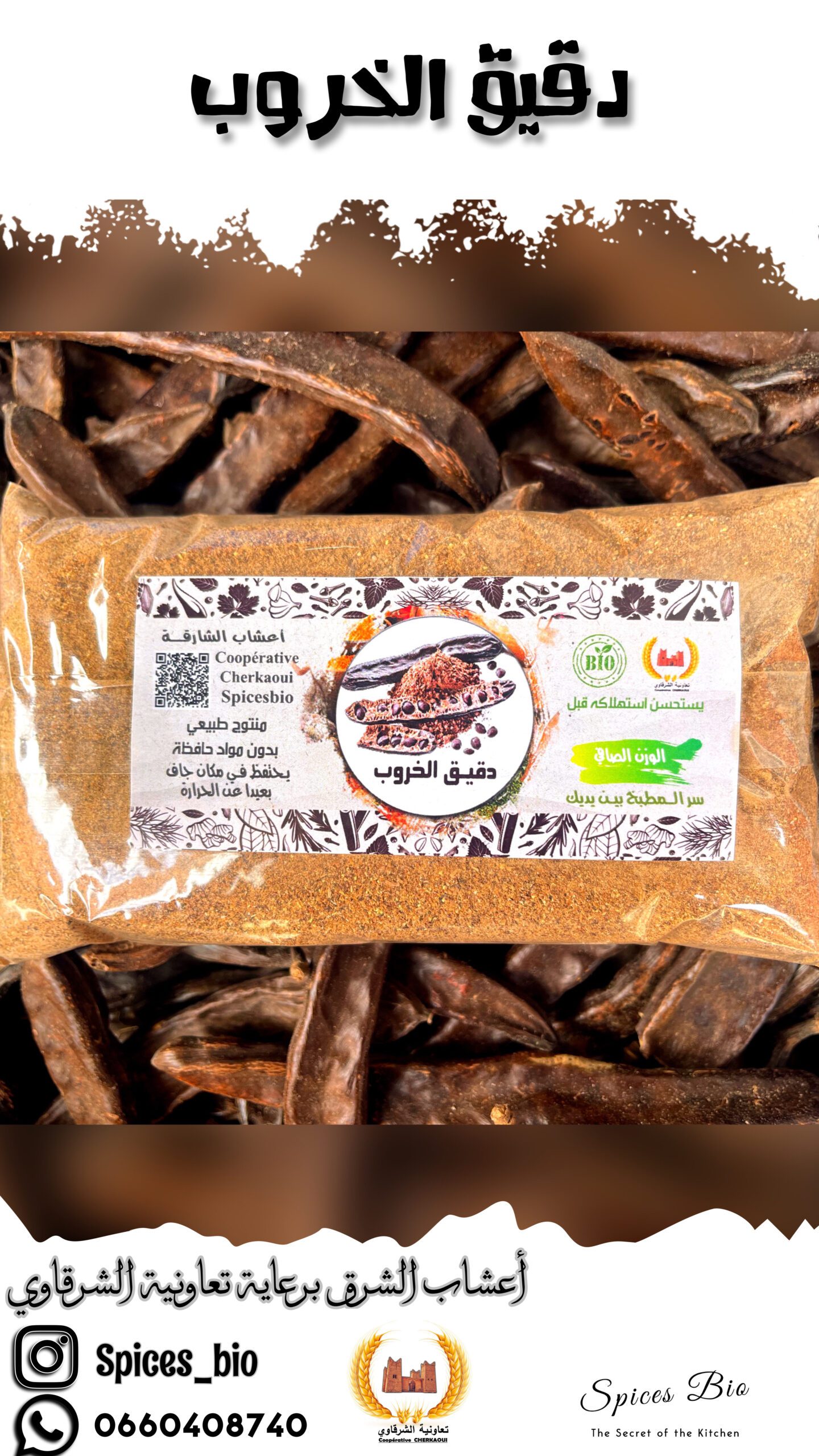 دقيق الخروب عبارة عن خروب مطحون ثم مصفى من الشوائب. وبدون إضافات